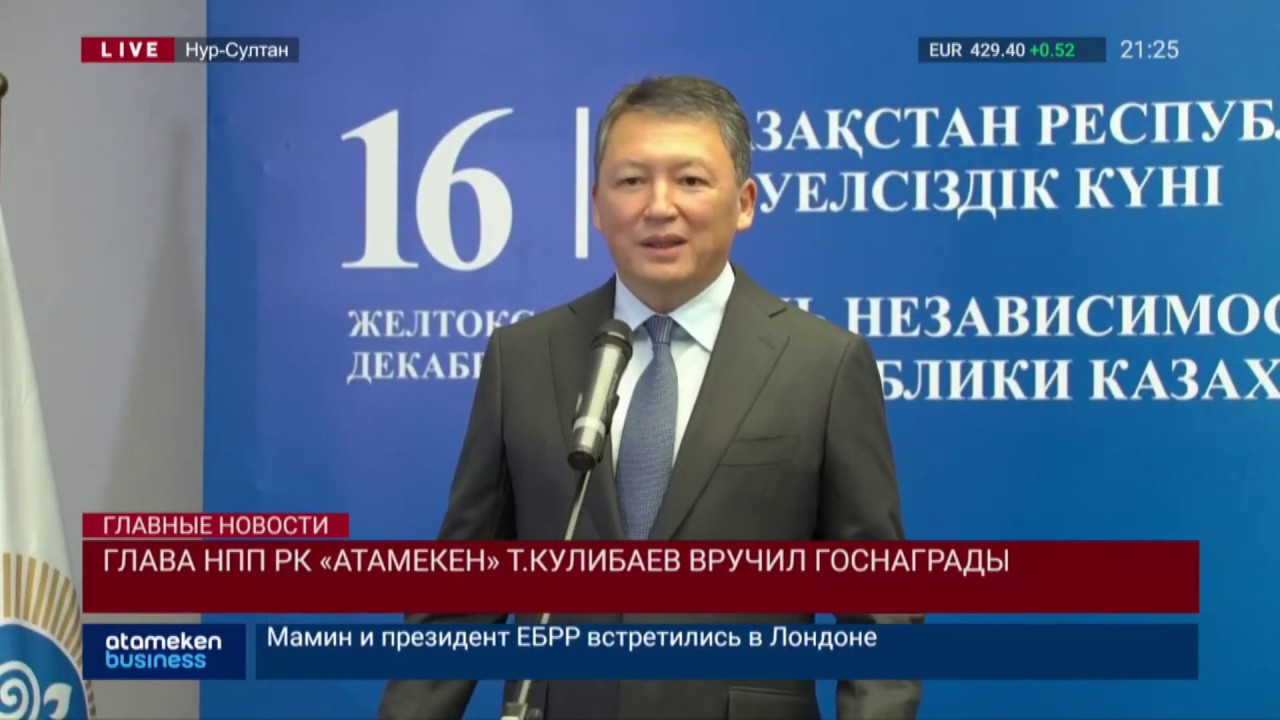 Глава Нацпалаты «Атамекен» Тимур Кулибаев также вручил государственные награды представителям нефтегазового сектора, бизнеса и спорта. Видные деятели различных отраслей удостоены орденов «Парасат», «Достық», «Құрмет», «Еңбек данқы», медалей «Ерен еңбегi үшiн» и почетных грамот. Церемония награждения прошла в преддверии празднования Дня Независимости. В своей речи Тимур Кулибаев отметил вклад бизнес-сообщества в экономический рост государства, а также достижения наших спортсменов на мировой арене.