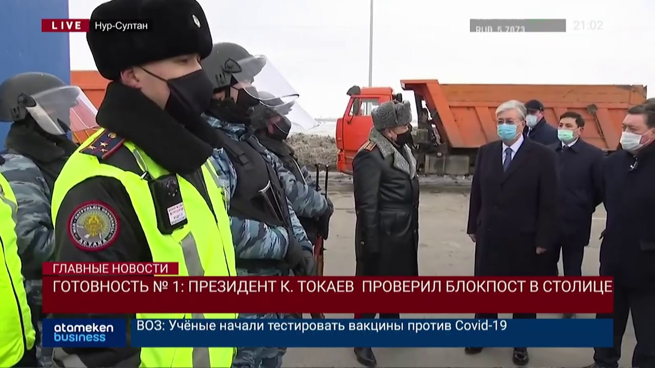 Глава государства осмотрел блокпост на въезде в столицу. Один из 7-ми рубежей был установлен в связи с введением чрезвычайного положения в стране и карантина в столице из-за пандемии коронавируса. О принимаемых мерах по противодействию COVID-19 отчитались министры здравоохранения, внутренних дел, обороны и аким столицы. Подробнее в материале Жалгаса Азганбаева.