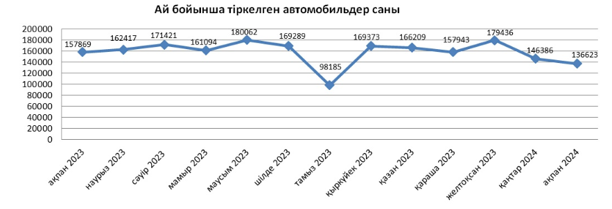 Осылайша, 2024 жылғы 1 наурыздағы жағдай бойынша Қазақстанда тіркелген автокөлік құралдарының саны 5 378,9 мың бірлікті құрады, оның ішінде 88,1% – жеңіл автомобильдер, 9,9% – жүк автомобильдері және 2% – автобустар.
