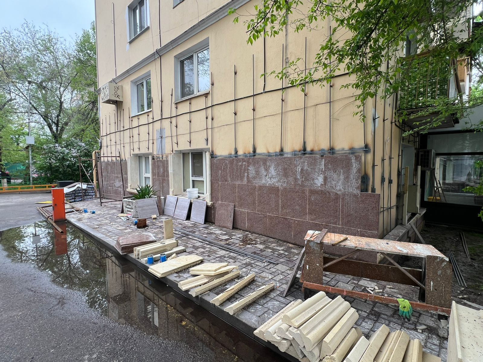 "Материалдардың эстетикалық сипаты мен ғимараттың сәулеттік келбетімен үйлесімі де мұқият сараланады. Қаптау жұмыстарына микрокеуекті құрылымы бар тас пайдаланылады. Мұндай материал қабырғалардың табиғи желдетілуін қамтамасыз етіп, ылғалдың жиналуына және көгерудің пайда болуына жол бермейді, сонымен қатар жоғары деңгейде жылу және дыбыс оқшаулау қасиетіне ие. Жұмыстың соңғы кезеңінде қасбетке гидрофобты өңдеу жүргізіліп, ол жауын-шашыннан қорғап, қызмет ету мерзімін едәуір ұзартады", – деді Дәурен Ағзымов.