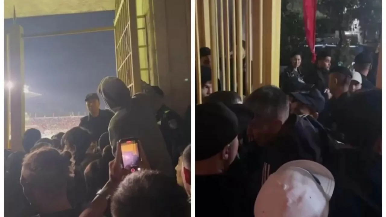 "Міне, осындай бассыздық орын алуда. Дәретханаға шығып кеткен жанкүйерлердің орнына басқалар келіп, енді оларды ұйымдастырушылар қайта кірбізбей жатыр. Полиция ұйымдастырушыларға жүгініңіздер десе, ұйымдастырушылар керісінше полицияға барыңыздар деп бір-біріне сілтеп жатыр. Нағыз бассыздық", – делінген видео кадрларында.