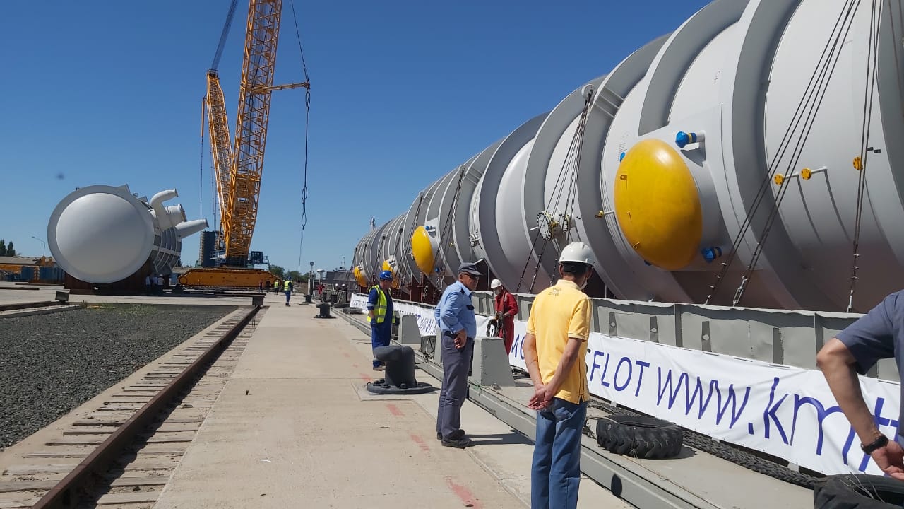 Қызу іске кіріскен Атырау теңіз порты ірі габаритті жүктерді де тасымалдауға қабілетті. Соңғы рет 2015 жылы мұнай және сервистік компаниялар үшін үлкен көлемдегі құрал-жабдықтар әкелінген екен. Қазір мұнда газ-химия кешені үшін пропан сақтауға арналған әрқайсысы төрт мың тонналық 25 резервуар келіп жатыр. Олар портқа жеткізілгеннен кейін 1250 тоннаға дейін жүк көтеретін екі кран арқылы транспортерлерге тиеледі екен. Өздігінен жүретін модульдік транспортерлер жүкті әрі қарай тапсырыс берген өндіріс орнына апарады.