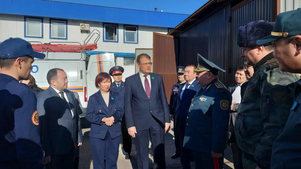 ТЖД бастығы генерал-майор Қ. Базарбаев депутаттарды қызметкерлердің жұмысымен, бар проблемалық мәселелерді көрсете отырып, құтқару бөлімшесінің жабдықталуымен таныстырып, жеке құраммен әңгімелесу өткізді.