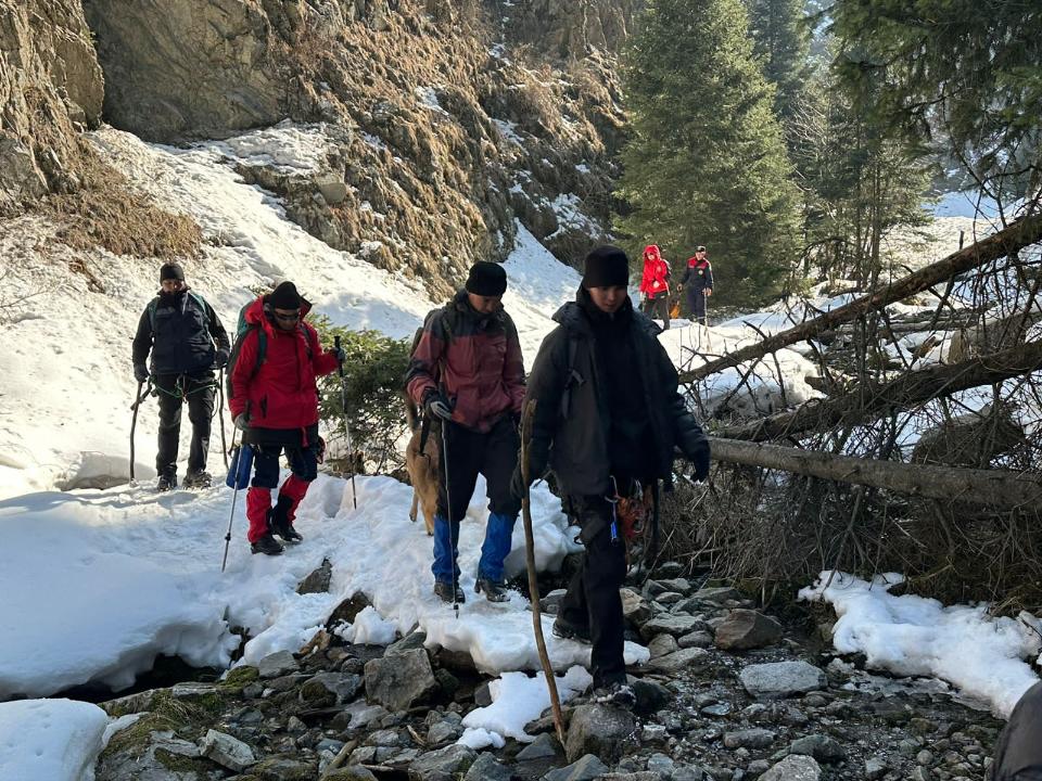Таңғы сағат 6.00–де ТЖМ Республикалық жедел-құтқару жасағының 7 адамнан құрылған жедел тобын, оның ішінде бір кинологиялық есепті іздеуге жіберу туралы шешім қабылданды. Республикалық жедел-құтқару жасағының құтқарушылары спутниктік байланыспен жарақталған. Космостанцияға келген Республикалық жедел-құтқару жасағының құтқарушылары шатқалдан төмен қарай іздеу жұмыстарын жүргізе бастады. Тәуліктің қараңғы уақытында, қауіпті тік беткейлермен, төменгі температурада жоғалған туристерді іздеу жұмыстары тоқтаған жоқ.