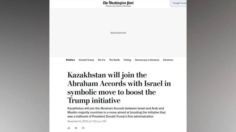 АҚШ-тың ең беделді газеттерінің бірі The Washington Post-та Қазақстанның Ибраһим келісіміне қосылуын назарынан тыс қалдырған жоқ.
