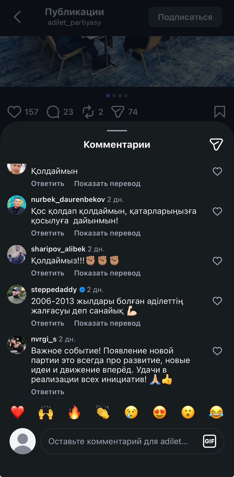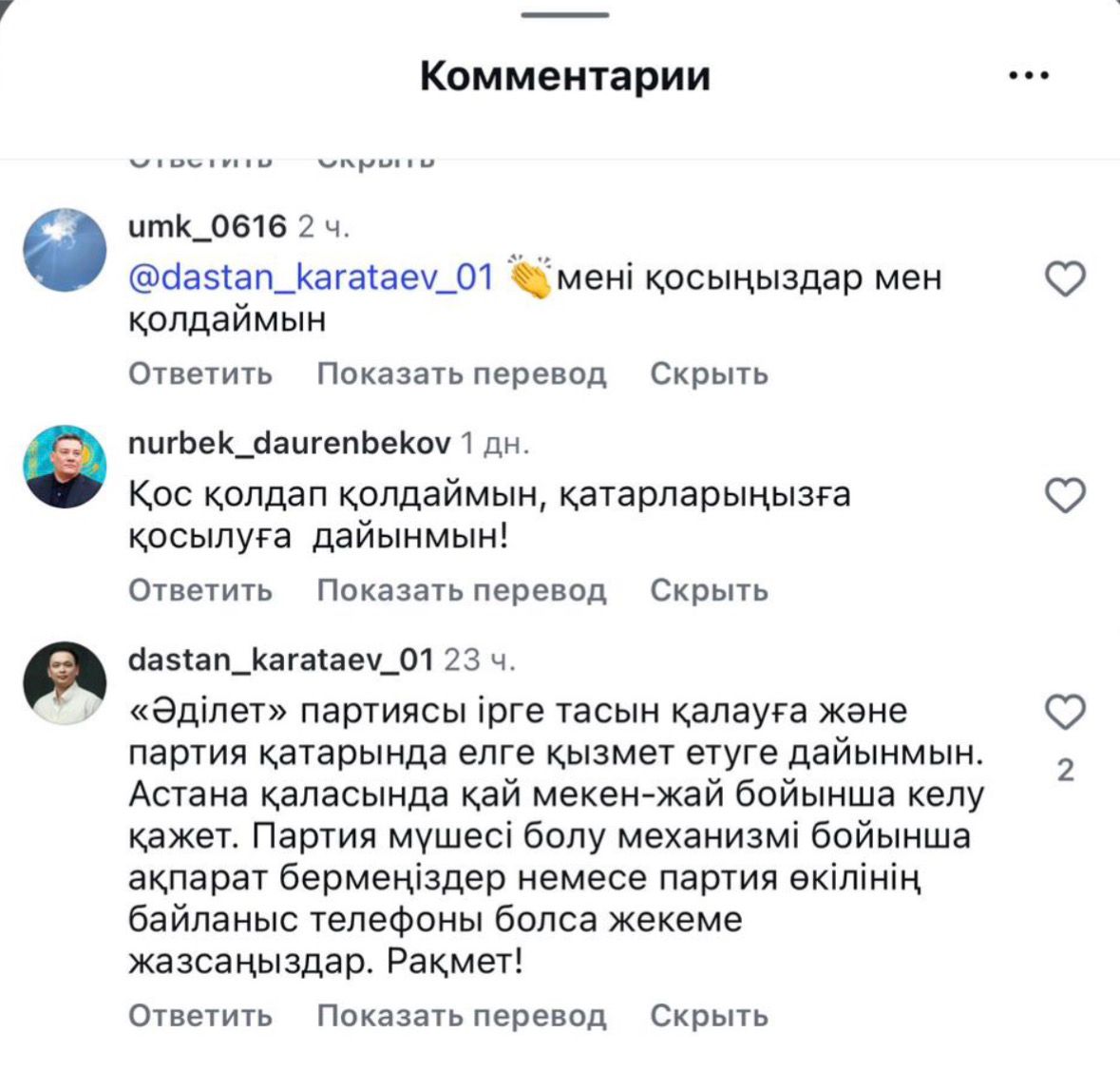 Бастамашыл топтың ұйымдастыру комитетін құру туралы мәлімдемесінен кейін, азаматтар әлеуметтік желілерде жаңа партияға қосылуға деген қызығушылық пен ниет білдіруде, деп хабарлайды inbusiness.kz сайты.