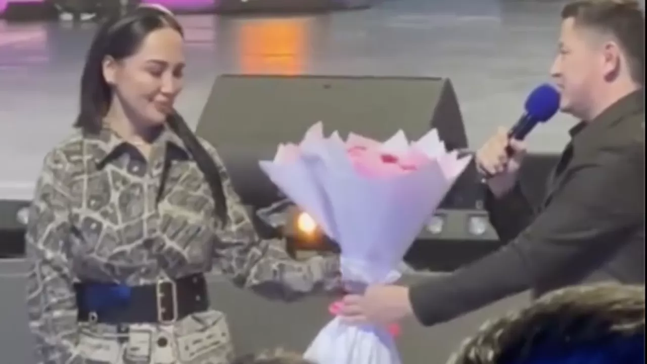 Нұрболхан Шарапов қолындағы гүлін ұсынып тұрып: “Маған тұрмысқа шығасыз ба?!” деп жұртты ду күлдірді.