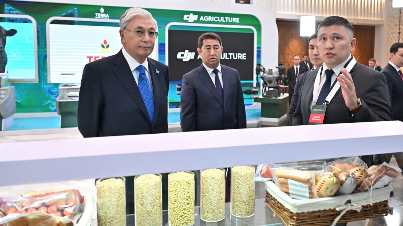 Президент Қасым-Жомарт Тоқаев Ауыл шаруашылығы еңбеккерлерінің екінші форумы аясында агроөнеркәсіп кешенінде қолданылатын цифрлық шешімдер көрмесімен танысты, деп хабарлайды inbusiness.kz сайты.