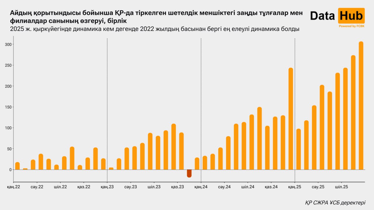 "1 қазанға дейін Қытай құрылтайшылары бар 5,3 мың заңды тұлға немесе филиал белсенді жұмыс істеп тұрған, бұл тіркелгендердің жалпы санының 74%-ын құрайды. Сонымен қатар белсенді ұйымдар саны бойынша да өсім бірдей болды +306", – деп мәлімдеді DATA HUB.