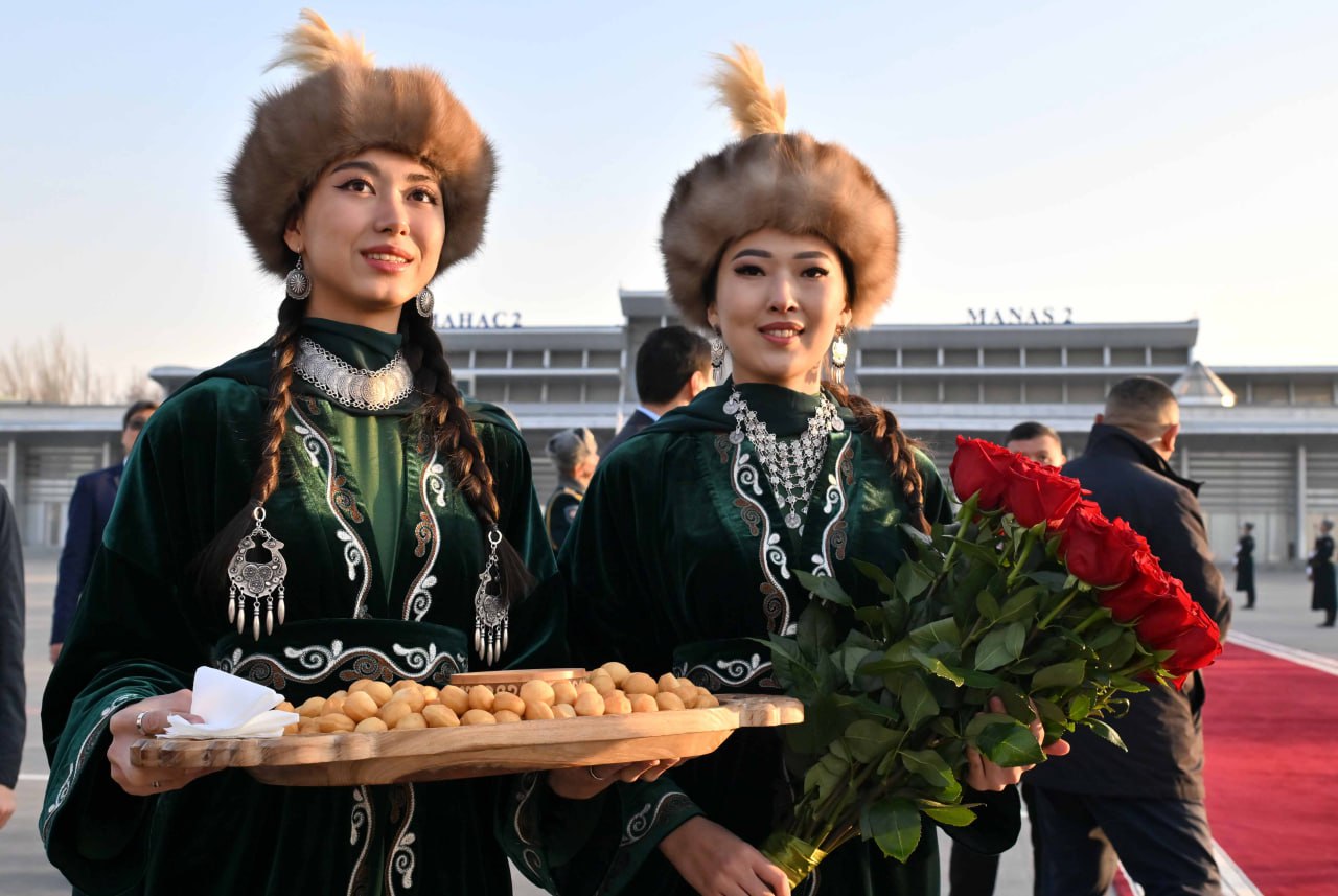 Қасым-Жомарт Тоқаевты Манас әуежайынан Қырғызстан Министрлер кабинетінің төрағасы – Қырғызстан Президенті Әкімшілігінің басшысы Адылбек Қасымалиев қарсы алды.