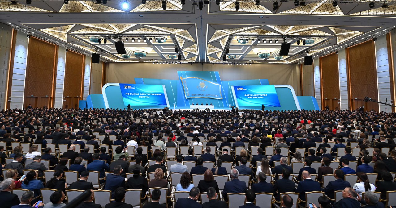 Тәуелсіздік сарайында Мемлекет басшысы Қасым-Жомарт Тоқаевтың қатысуымен барлық деңгейдегі мәслихат депутаттарының ІІІ республикалық форумы өтіп жатыр.