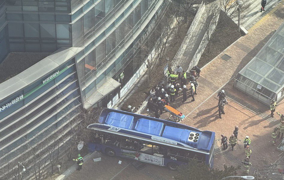 Оңтүстік Кореяның астанасында жолаушылар автобусы жаяу жүргіншілер жолына шығып кетіп, ғимаратқа соқты, деп хабарлайды inbusiness.kz сайты.