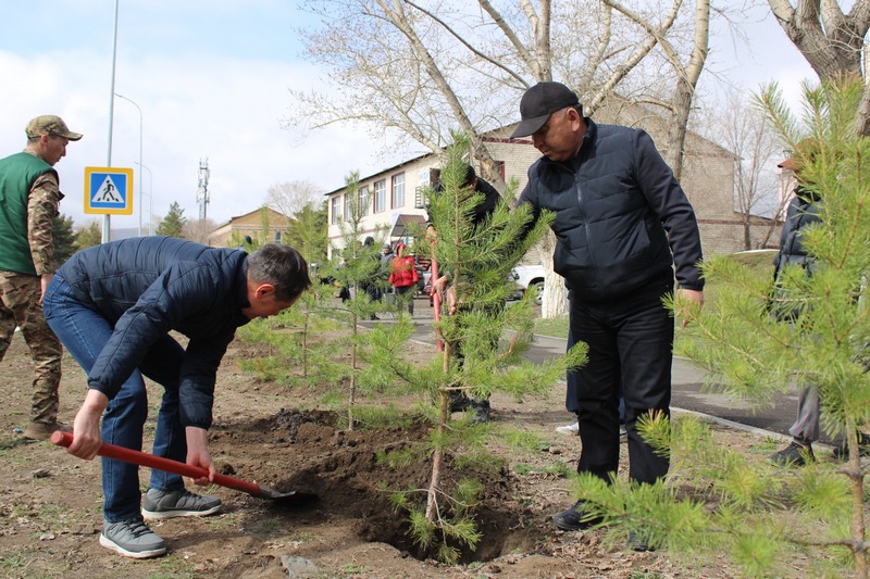 – "Таза Қазақстан" акциясы аясында ауданда кешенді жұмыстар жүргізілуде. Санитарлық тазалаумен қатар көгалдандыруға да ерекше көңіл бөлінуде. Бүгін біз 100 қарағай ектік, алдағы уақытта бұл жұмысты жалғастыруды жоспарлап отырмыз, – деді денсаулық сақтау саласының ардагері Серік Жекеұлы.