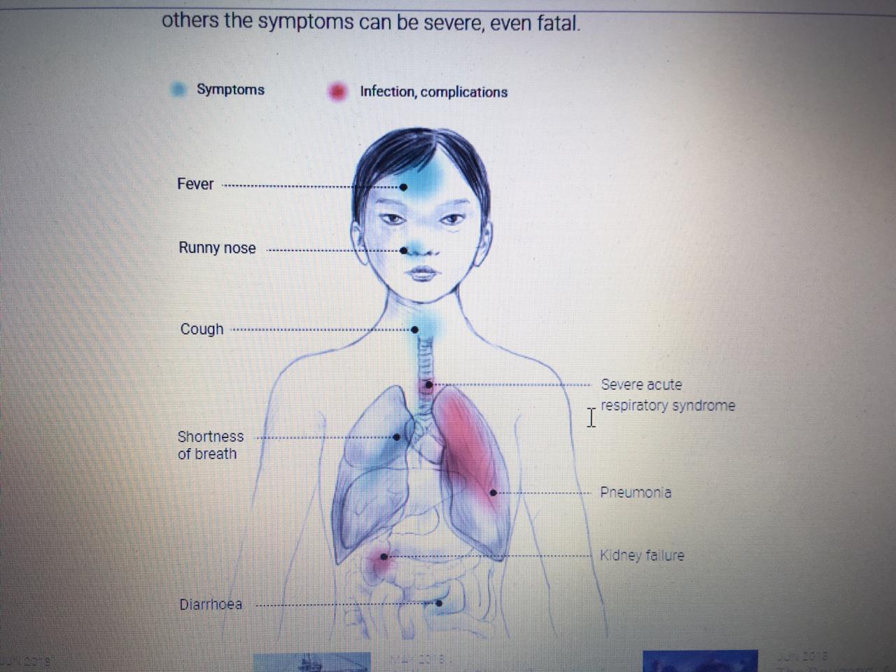 Қытайдың Ухань қаласынан тараған жаңа коронавирустың атипиялық пневмониямен(SARS) ұқсас келуі халықтың үрейін ұшырып отыр. 2002-2003 жылдары Қытай мен Гонконгта етек жайған атипиялық пневмония немесе ауыр жіті респираторлы синдром салдарынан 813 адам қаза болып, 8437 кісі аурудың вирусын жұқтырып алған болатын. Бұл дерт түрі 2002 жылдың қараша айында Қытайдың Гуандун провинциясында тіркелген. Оның қоздырғышы – SARS деп аталатын коронавирус. Ағзада көбейген бұл вирус өкпе альвеолаларының жасушаларын құртады. Бастапқыда Қытай билігі эпидемияны жасырып, ол туралы ақпараттың жариялануына жол бермеген. Бірақ іс насырға шауып, екі айдың ішінде вирус Гонконг пен Вьетнамға, 2003 жылдың ақпан айында басқа елдерге тарап кеткен еді.