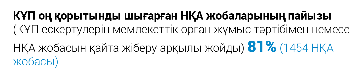Соңғы үш жылда КҰП ұсынған сараптамалық қорытындылардың 81%-ына оң шешім шығарылған. Бұл да бизнес үшін үлкен көмек. Бұл жерде әңгіме 4930 нормативтік-құқықтық акті мен 100 заң жобасы жайлы болып отыр.