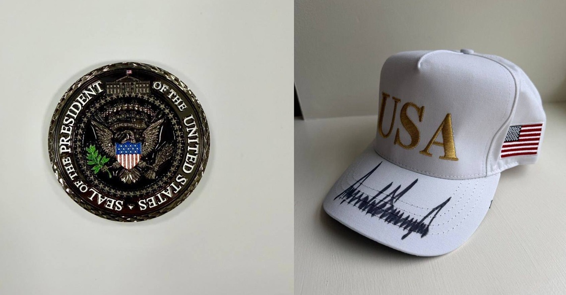 АҚШ Президенті Мемлекет басшысына сый-сияпат жолдады. Олардың арасында Ақ үйдің символикалық кілті мен өзінің қолтаңбасы қойылған бейсболка да бар.