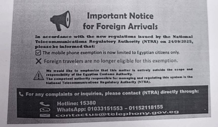 "Электр байланысын реттеудің ұлттық органы (NTRA) 2025 жылғы 24 қыркүйектен кейін күшіне енген жаңа нұсқаулық шығарды. Ол бойынша мобильді байланыс алымын төлеуден енді тек Египет азаматтары ғана босатылады. Ал, шетелдік туристер мен азаматтар бұл жеңілдікті ары қарай пайдалана алмайды", – деп мәлім етті мысырлық портал.