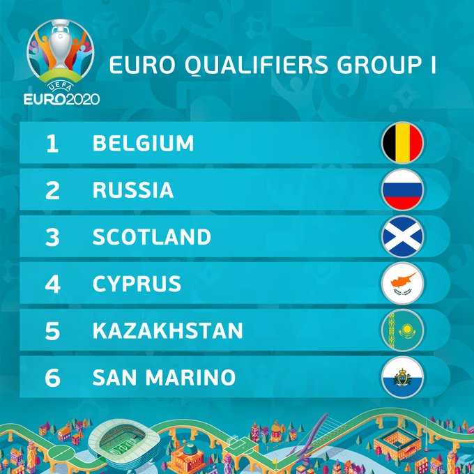 Қазақ елі құрамасы "I" тобына түсті. Бұл топты 2018 жылғы әлем чемпионатының қола жүлдегері және дәл қазір FIFA-ның ұлттық құрамалар арасындағы рейтингінде көш бастап тұрған Бельгия құрамасы бастап тұр. Сонымен қатар, Ресей, Шотландия, Кипр және Сан-Марино футболшыларымен бір топта додаға түсетін болдық.