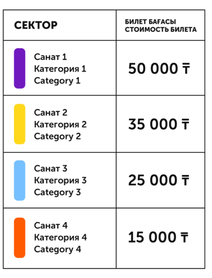 Билеттердің құны 15 мың теңгеден басталады, деп жазады inbusiness.kz сайты.
