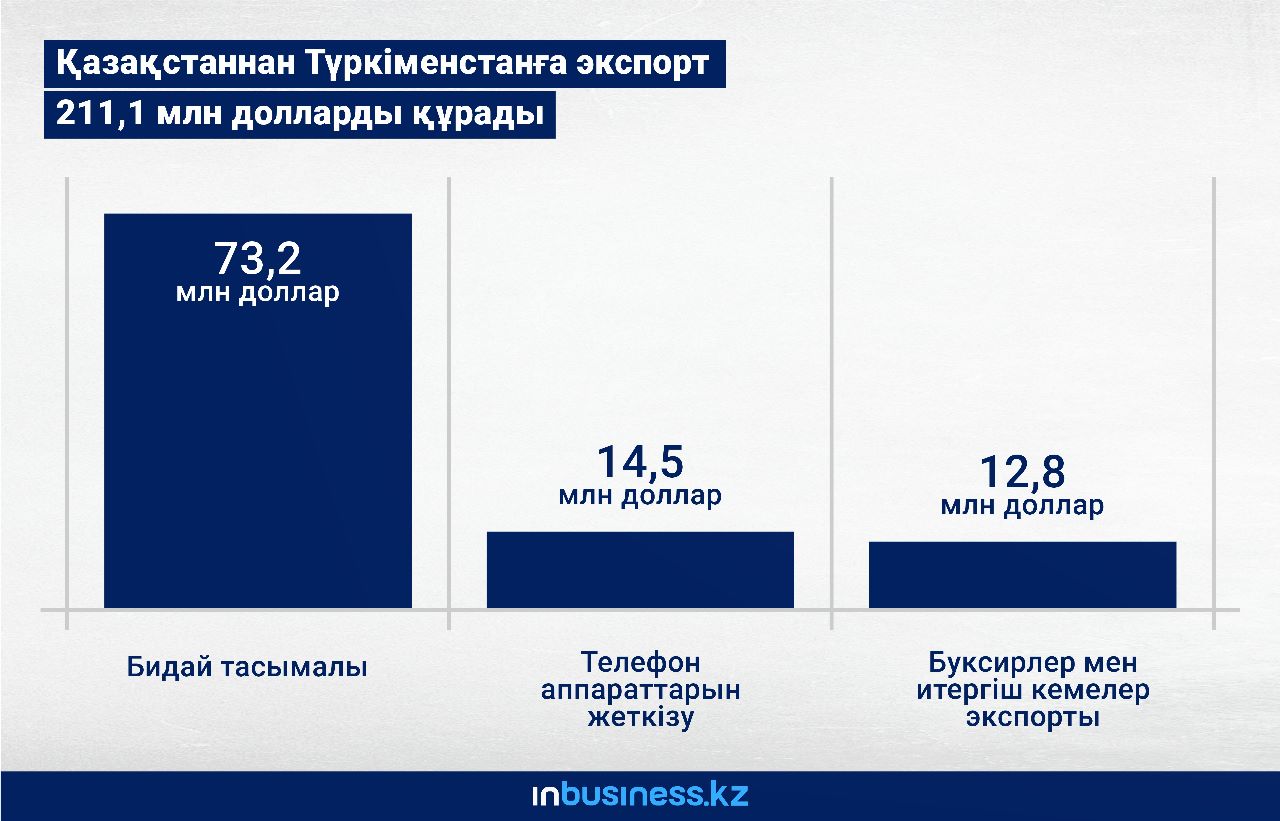 2022 жылдың қаңтар-тамызында Қазақстаннан Түркіменстанға экспорт 2,5 есе өсіп, 211,1 млн доллар болды.