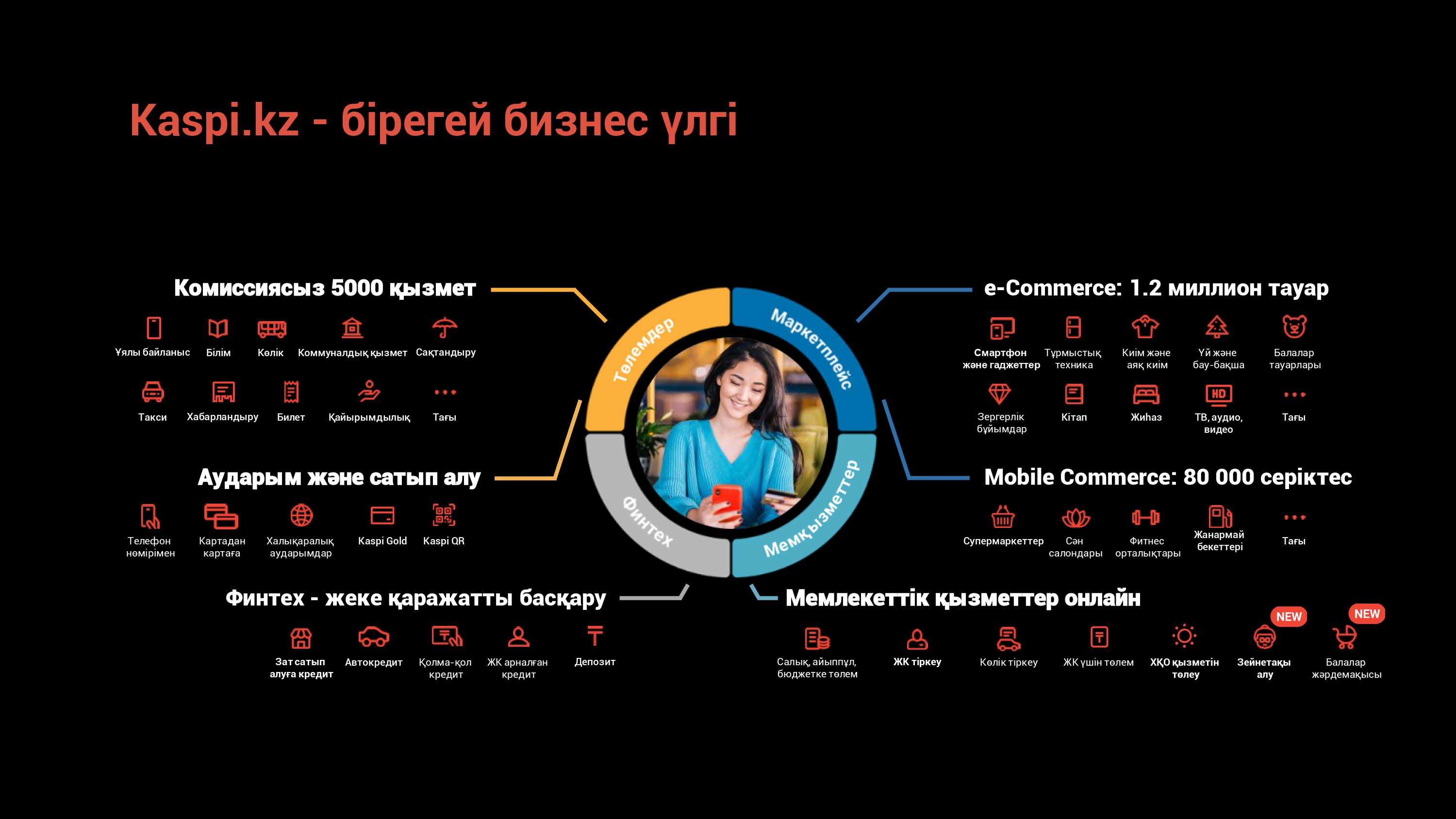 "Біздің бизнесіміздің бірегейлігі бізде көптеген қызметтер барында емес, олардың барлығы бір қосымшада жинақталғанында, – деп түсіндірді Михаил Ломтадзе. Kaspi.kz біздің сүйікті тұтынушыларымызға күнделікті өмірде көмектесетін көптеген қызметтерді біріктіреді".