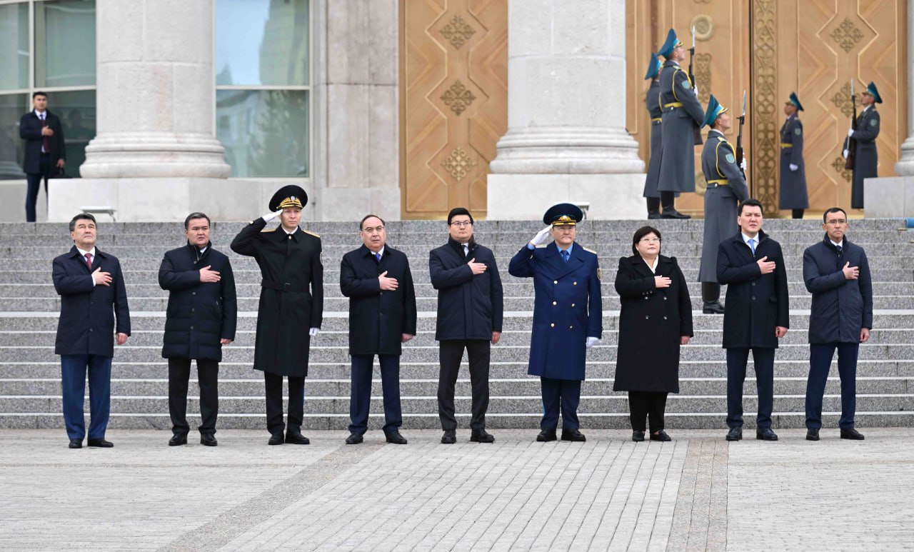 Бұдан кейін Қасым-Жомарт Тоқаевтың бұйрығымен Мемлекеттік ту көтеріліп, Әнұранымыз шырқалды.