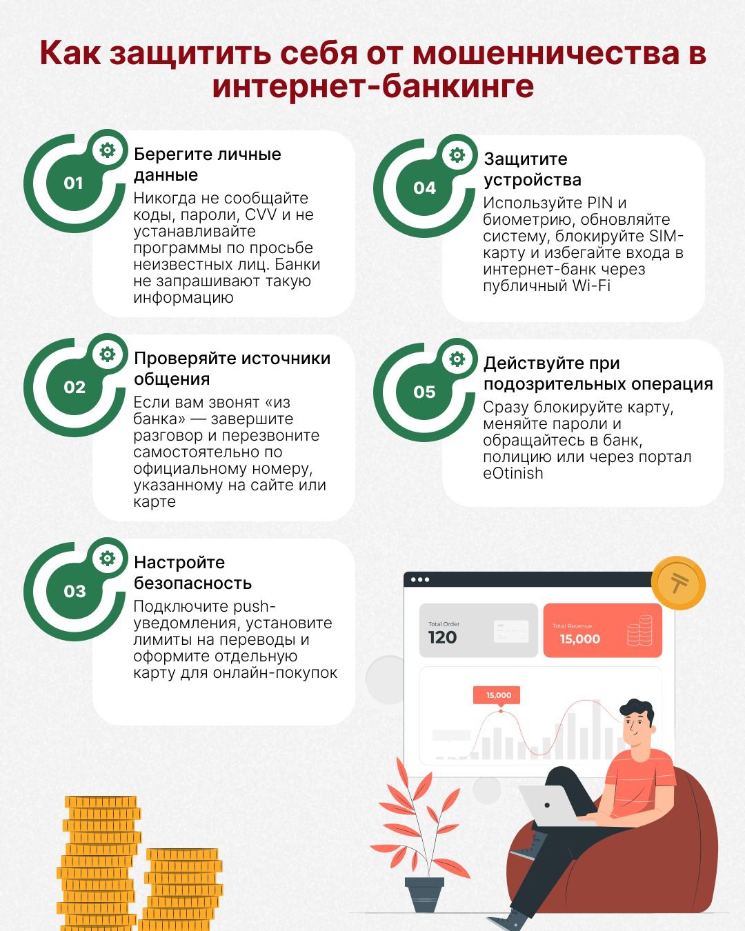 Мошенники часто представляются сотрудниками банков, чтобы получить доступ к вашим данным. Никогда не сообщайте коды из SMS, пароли, CVV или ИИН, а также не устанавливайте программы удаленного доступа (AnyDesk, TeamViewer) по просьбе "банка". Так, в Жетысуской области группа злоумышленников убеждала граждан установить приложение AnyDesk, после чего получала доступ к их телефонам и банковским счетам. Жертвами стали более 40 человек, а общий ущерб превысил 70 млн тенге.