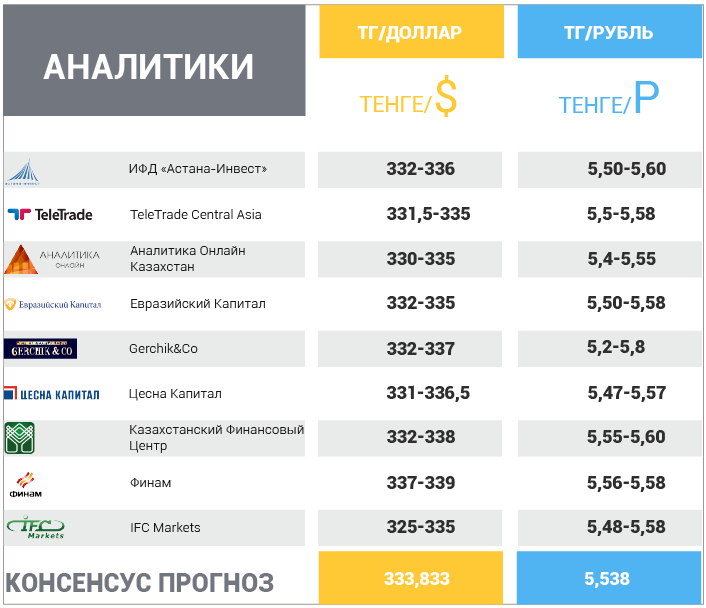 Пара USD/KZT будет торговаться в коридоре 331,5-335 тенге за гринбэк, а RUB/KZT может остаться в коридоре 5,5-5,58 тенге за рубль.