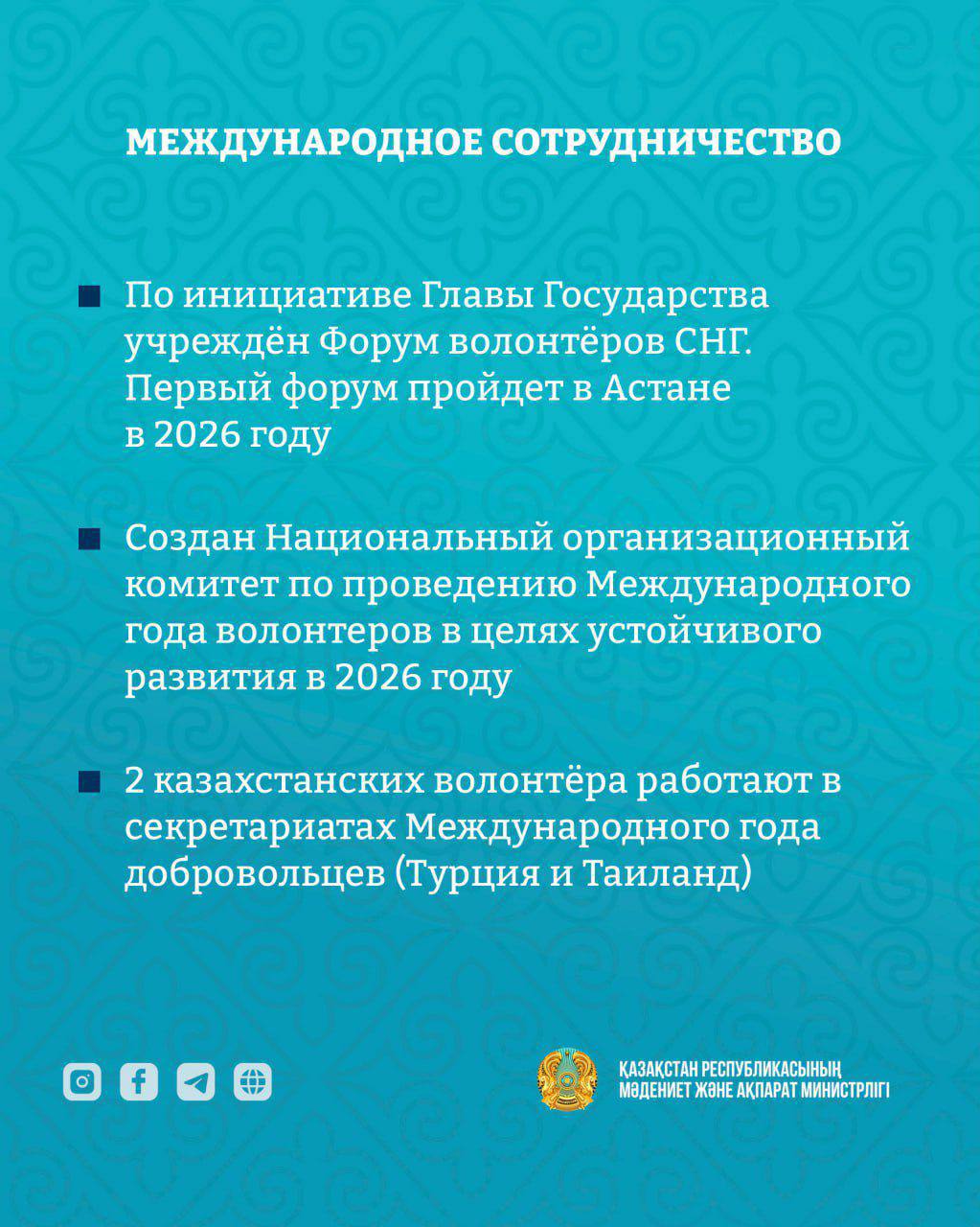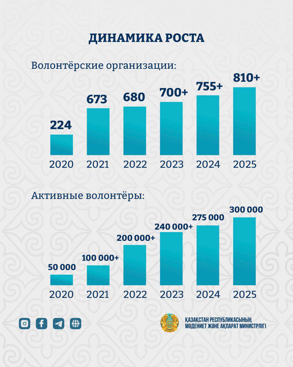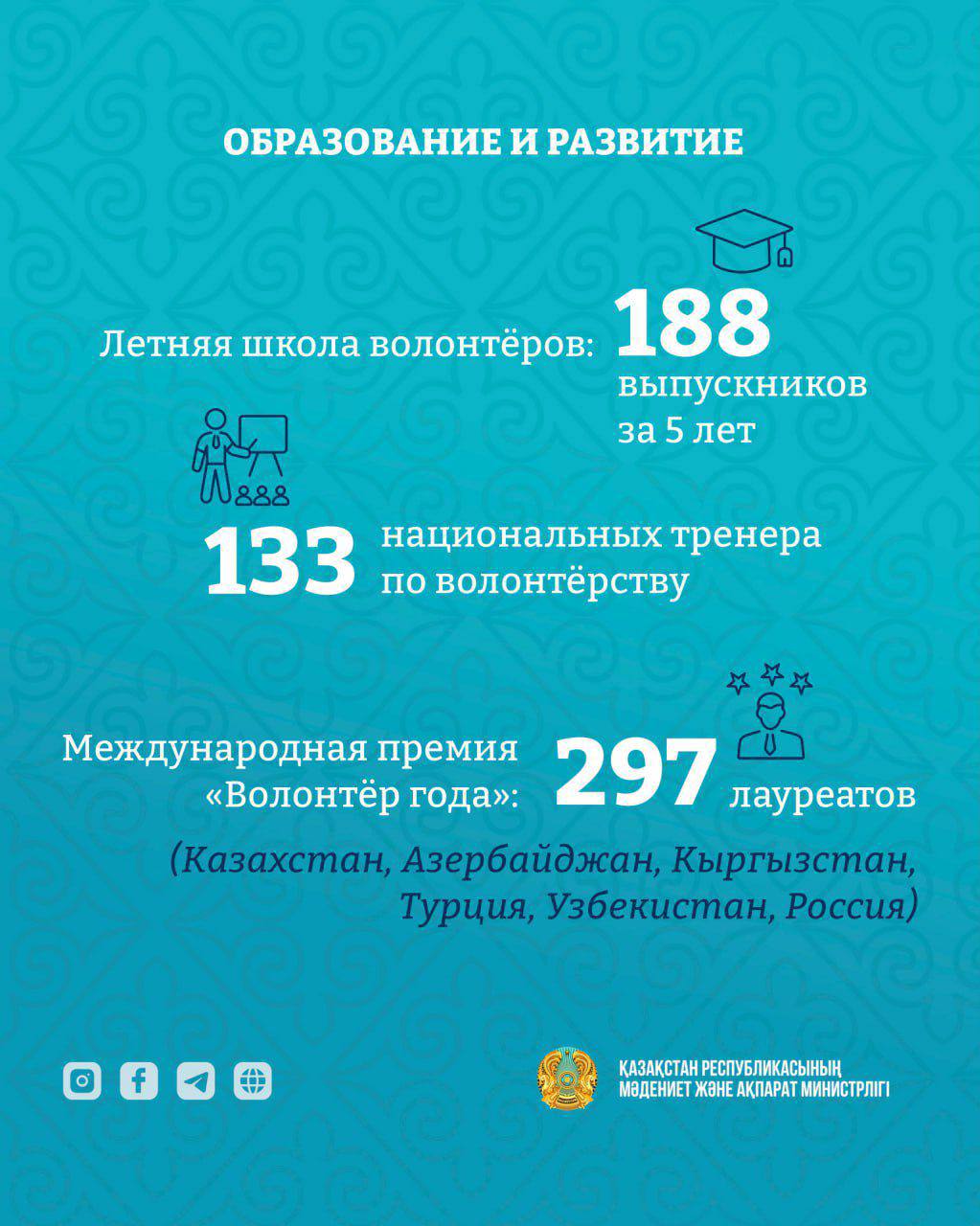 По словам министра, сегодня волонтёрское движение в Казахстане стало неотъемлемой частью общественной жизни. Волонтёры помогают в культуре и образовании, экологии и медицине, социальной поддержке и благотворительности. Они первыми приходят на помощь в трудных ситуациях, реализуют масштабные просветительские проекты и вдохновляют тысячи людей по всей стране.
