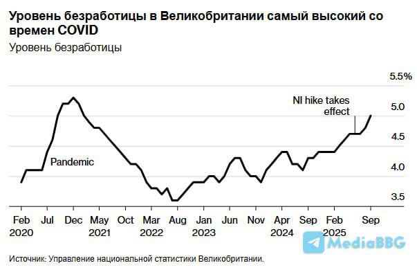 Уровень безработицы в Великобритании вырос до 5% за третий квартал 2025 года, что стало максимальным показателем с начала 2021 года. Новые данные усилили ожидания того, что Банк Англии может пойти на снижение ключевой ставки уже в декабре, передает inbusiness.kz со ссылкой на Bloomberg.