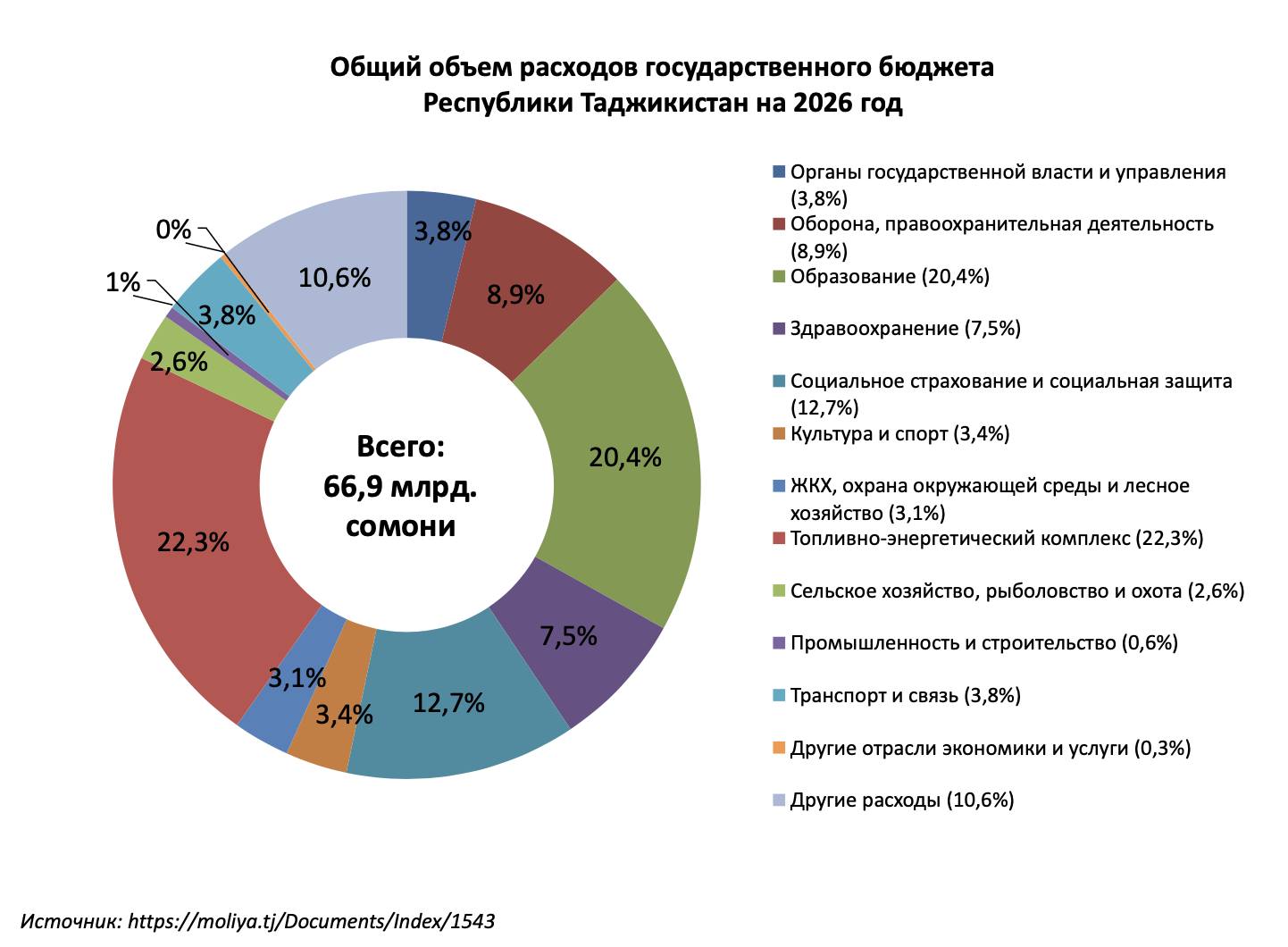 Таджикистан делает ставку на энергетику и инфраструктуру — 22% бюджета, сохраняя при этом почти половину (47%) на социальные цели.