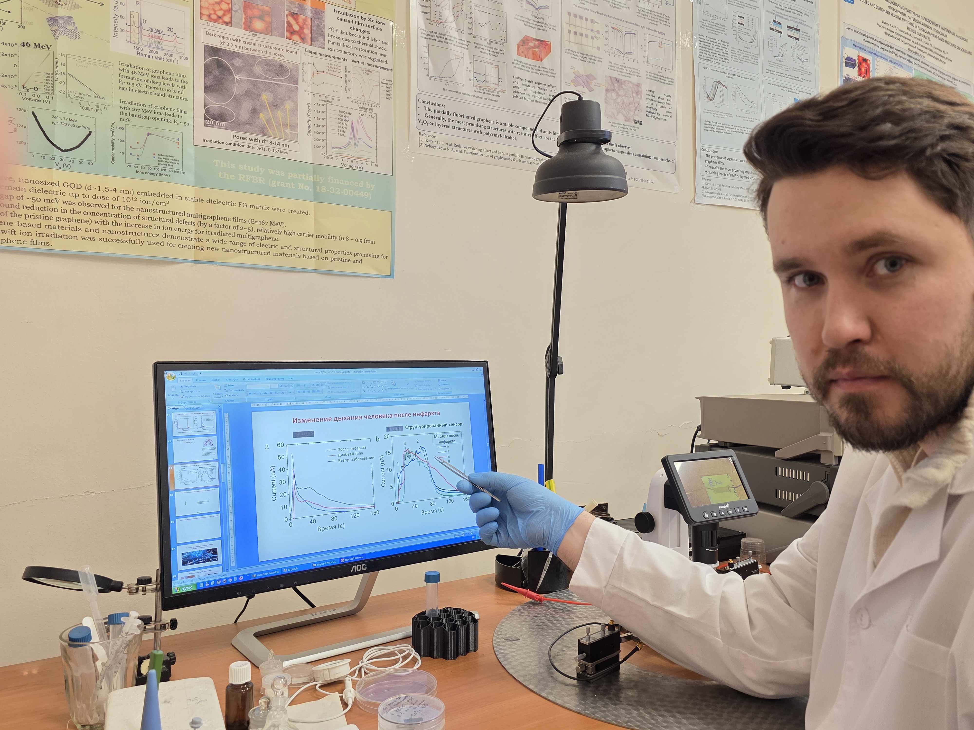 Разработка принадлежит специалистам Института физики полупроводников имени А.В. Ржанова СО РАН и Объединенного института высоких температур РАН. Ученые создали сенсор на основе графена и полимера, который фиксирует молекулы-маркеры заболеваний в выдыхаемом воздухе.