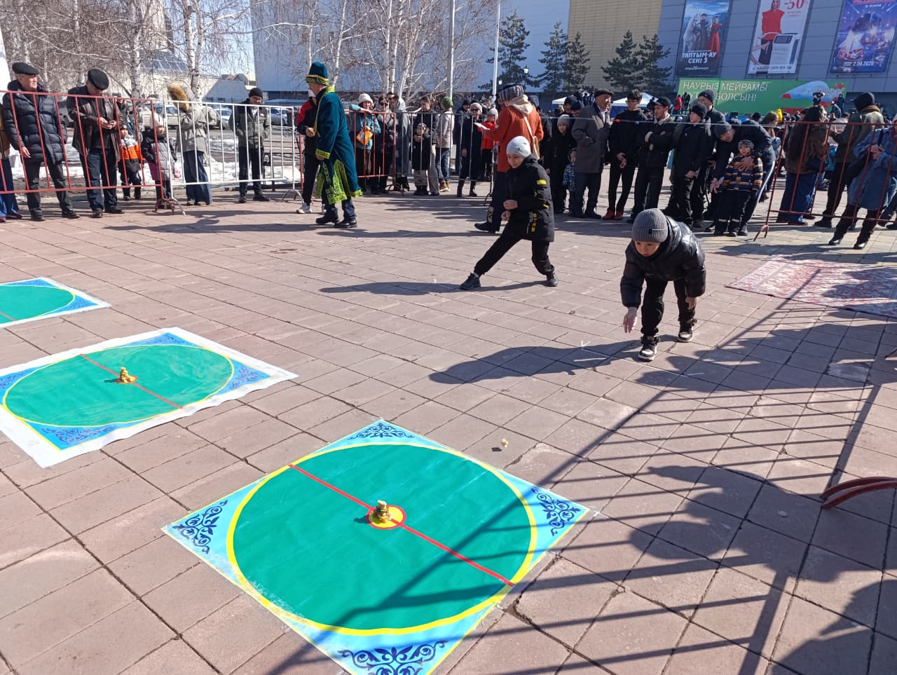 На следующей локации можно было не только посмотреть, но и поучаствовать в различных спортивных состязаниях. Мужчины соревновались в силе и выносливости в армреслинге, приседании с имитацией барана, меткости в асык ату, смекалке – в тогызкумалаке, а также в перетягивании каната. В последнем состязании по очереди участвовали не только мужчины, но и женщины и дети.