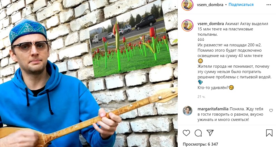 "Акимат Актау выделил 15 миллионов тенге на пластиковые тюльпаны. Жители города не понимают, почему эту сумму нельзя было потратить на решение проблемы с питьевой водой. Кто-то удивлен?" – задается вопросом автор.