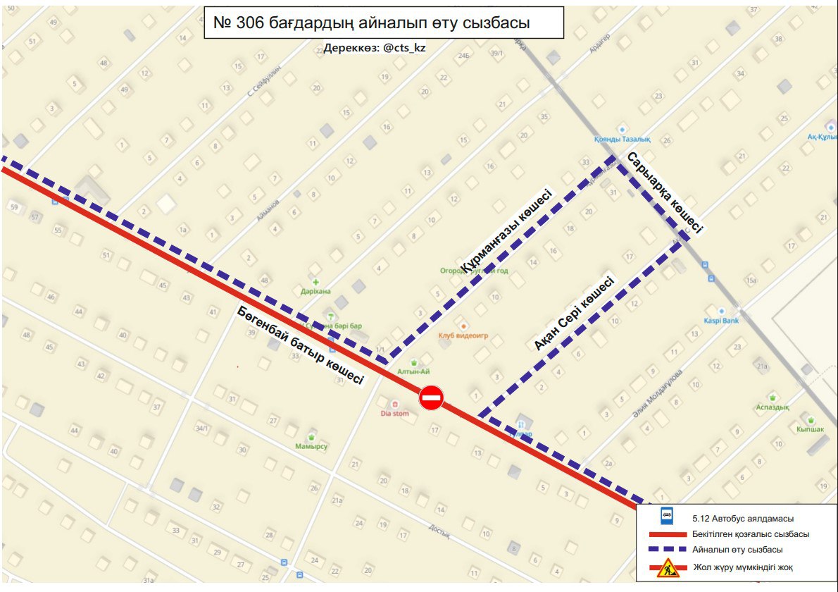 "Временно изменена схема движения маршрута № 306 в селе Талапкер. Просим заранее планировать свой маршрут", - проинформировали в компании.
