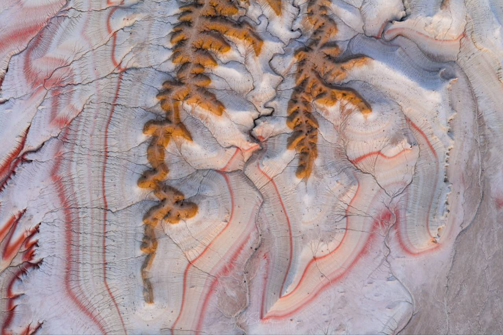 Эти полосы появились не случайно. Это осадочные породы, которые накапливались слой за слоем в далёком прошлом, когда на месте нынешних степей существовали водоёмы и солёные лагуны. Каждый цвет отражает отдельный этап геологической истории — изменения климата, состава воды и условий осадконакопления.