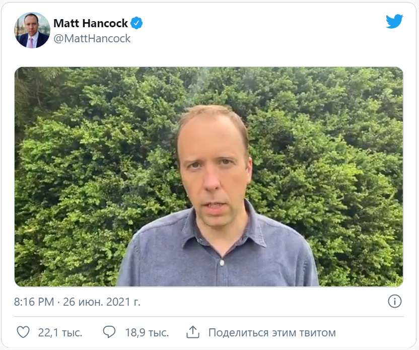 В официальном письме к премьеру Британии Борису Джонсону министр сообщил, что ему необходимо в данный момент уделить больше времени семье и детям. По словам Хэнкока, ему бы не хотелось, чтобы его личная жизнь "отвлекала внимание от усилий, которые помогут выйти из кризиса" британцам.
