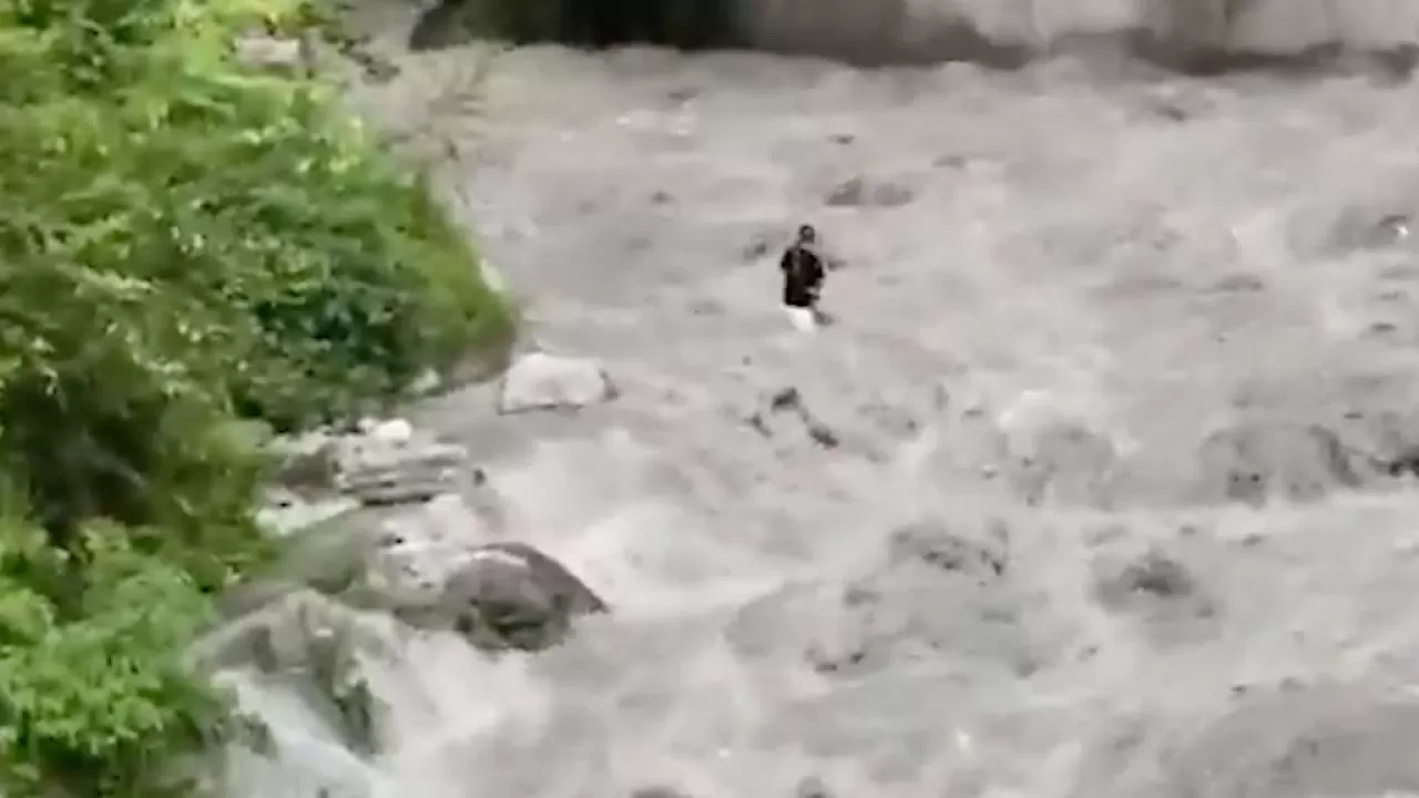 На размещенных в сети роликах видно, как люди в панике пытаются удержаться на высоких камнях и деревьях, некоторых из них уносит водой.