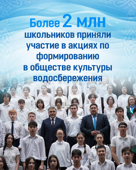 Образовательная работа среди школьников охватила более 2 млн детей. По всему Казахстану проводились открытые уроки по экономии воды, конкурсы рисунков, эко-забеги и другие акции, формирующие культуру водосбережения в обществе.