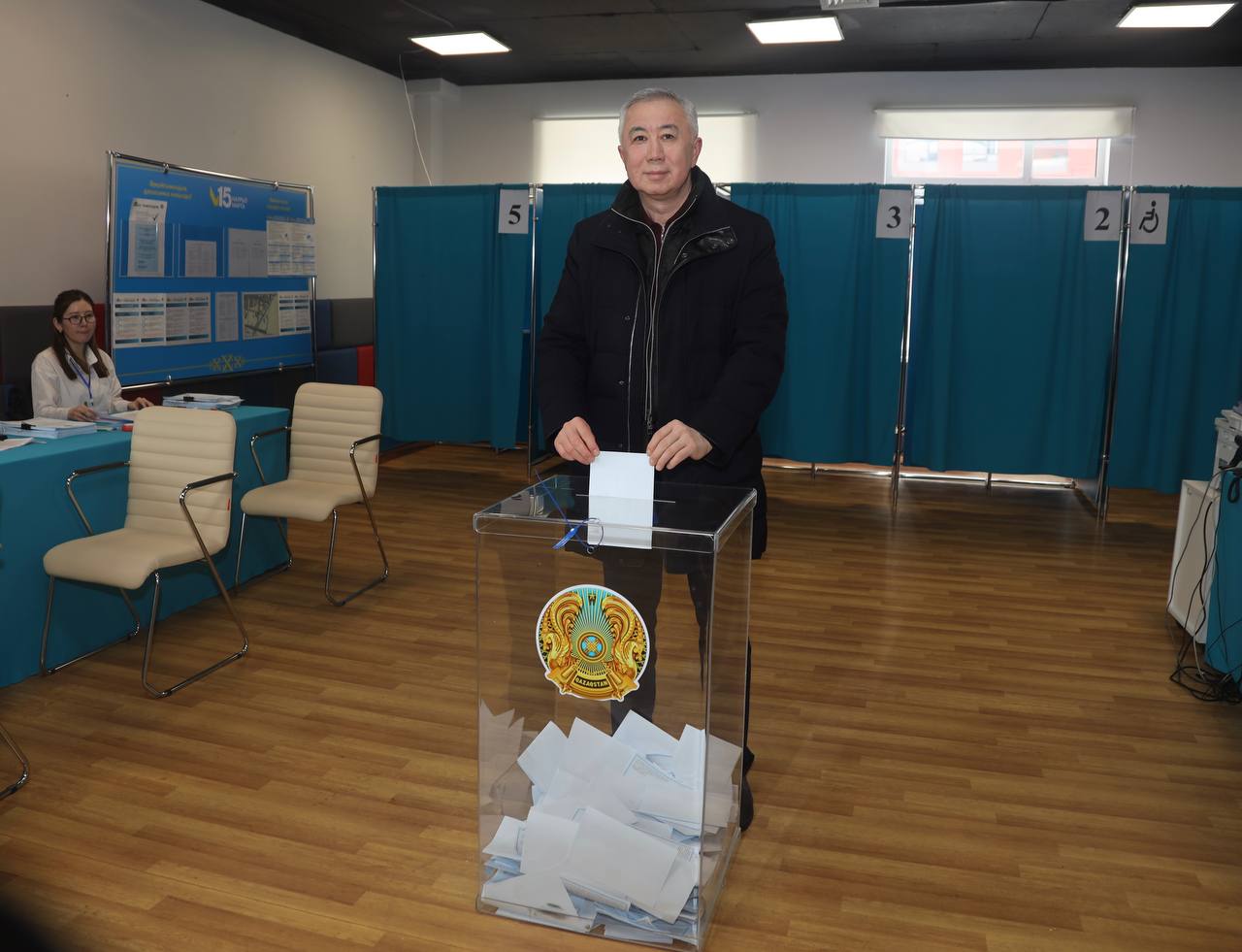 На своем избирательном участке проголосовал министр энергетики Ерлан Аккенженов.