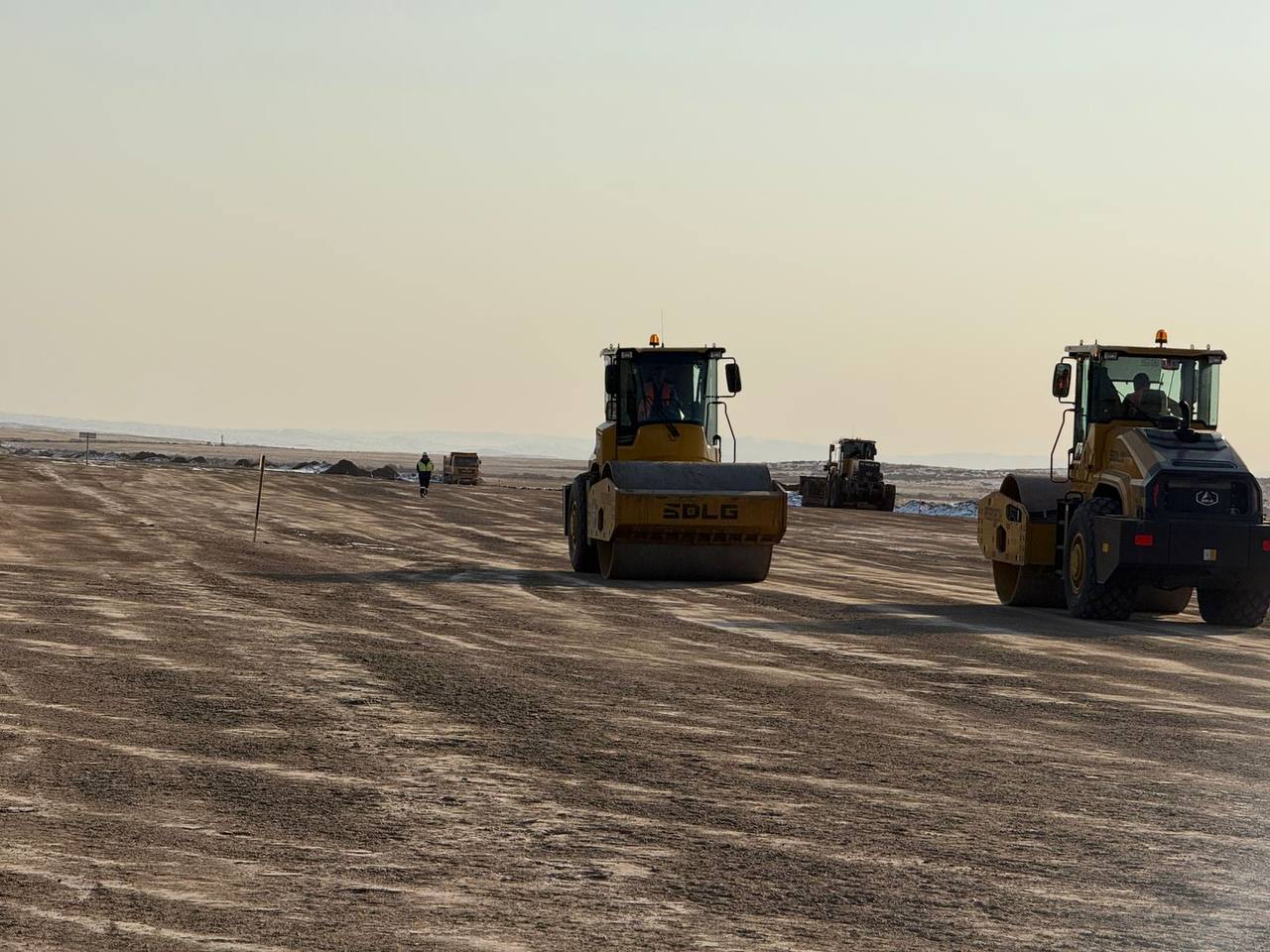 "Работы ведутся на участках общей протяжённостью 42 км. На строительной площадке задействовано 120 единиц техники и 272 работника. Ведутся работы по разработке выемки и возведению земляного полотна, общий объём выполненных земляных масс составляет 517 972 м³. Параллельно строятся четыре вахтовых городка, ведётся планировка и устройство фундаментов зданий, возведение ограждений, подведение инженерных сетей ВК, устройство подъездных дорог и сборка каркаса административно-бытовых комплексов", - сообщили в минтрансе Казахстана.