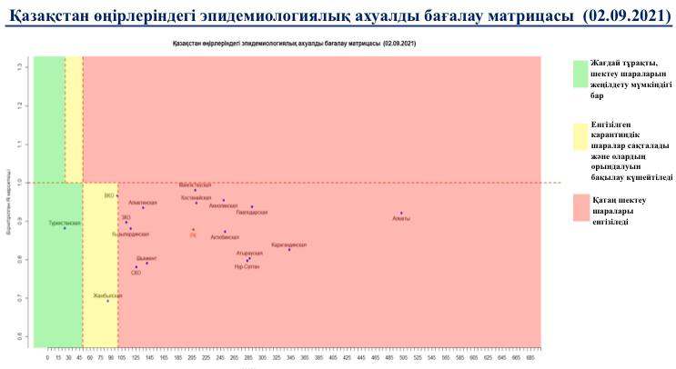 Опубликована матрица оценки эпидемиологической ситуации в регионах Казахстана на 2 сентября, передает inbusiness.kz.