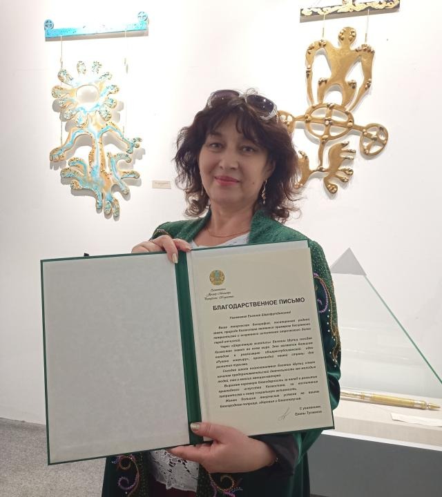 Благодарственное письмо от заместителя премьер-министра РК, уникальный шапан ручной работы и диплом значимости были вручены карагандинской художнице Евгении Шульц на открытии международной ретроспективной выставки Евразийского союза дизайнеров, сообщает inbusiness.kz со ссылкой на пресс-службу акима Карагандинской области.