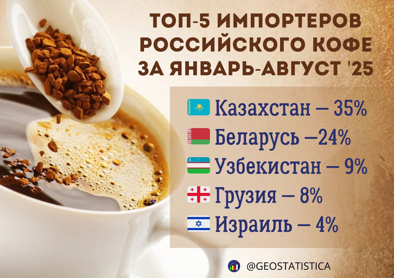 Россия с января по август 2025 года экспортировала растворимого кофе на 196 млн долларов, передает inbusiness.kz со ссылкой на Геостатистику.