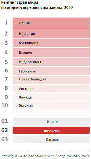 Исследование измеряет достижения стран мира с точки зрения обеспечения ими правовой среды, базирующейся на универсальных принципах законности, сообщает ranking.kz.