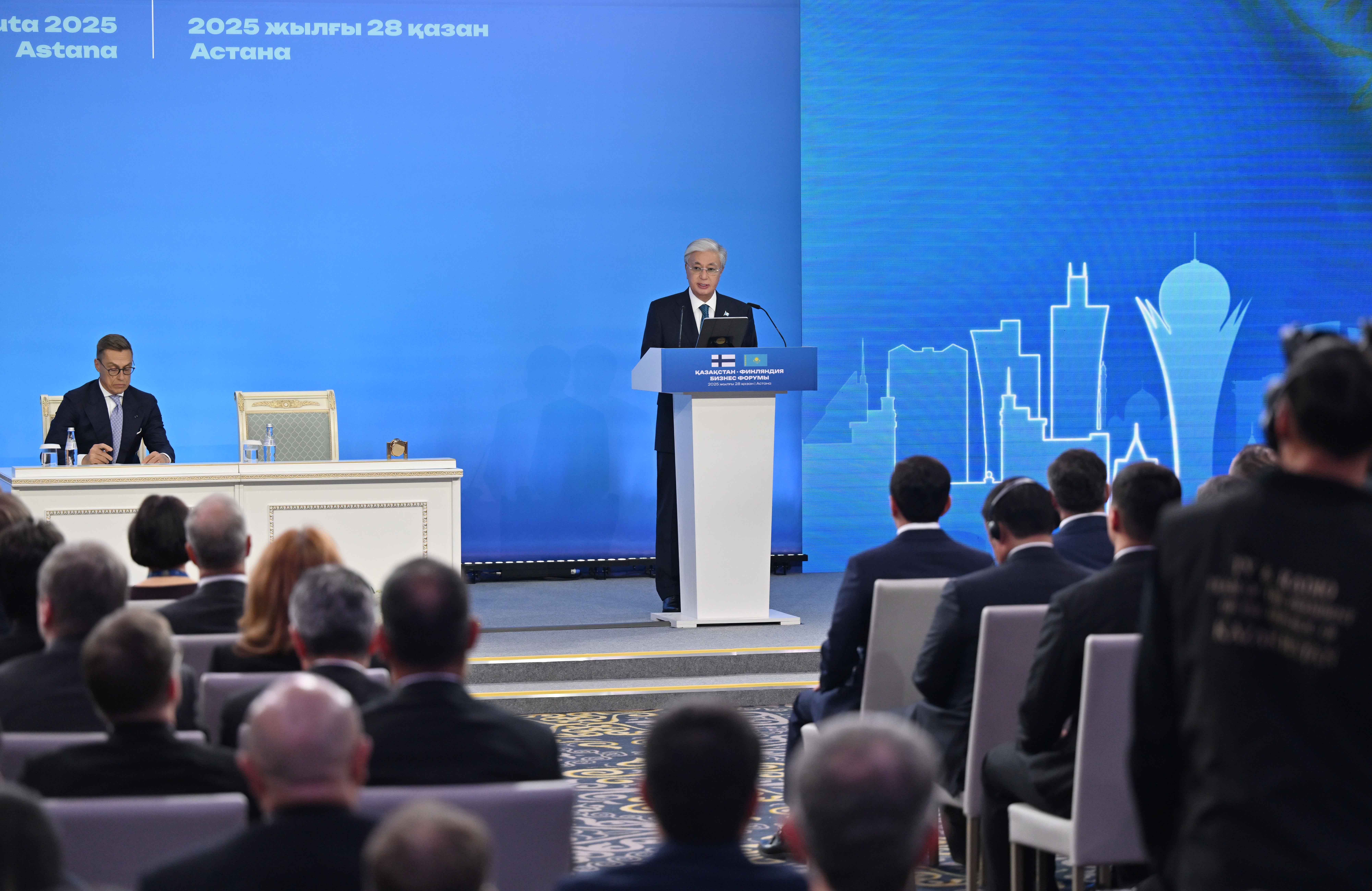 "Сегодня в ходе переговоров мы с президентом Александром Стуббом подтвердили нашу приверженность расширению партнерства между Казахстаном и Финляндией и открытию новых возможностей для динамичного роста. В прошлом году прямые инвестиции Финляндии в Казахстан выросли более чем на 80%, достигнув в общей сложности почти полумиллиарда долларов. Финляндия давно признана одной из самых развитых стран в области инноваций и технологического лидерства. Такие компании, как KONE, Nokia, Fortum, стали одними из самых ярких примеров успеха страны, они способствовали дальнейшему прогрессу и вдохновили новые поколения новаторов. Сегодня в Казахстане успешно работают около 50 компаний с финским участием, в том числе такие всемирно признанные бренды, как Tikkurila, Wärtsilä, Nurminen, Metso, Valtra, Peikko и другие. Казахстан привержен расширению этого партнерства и дальнейшему укреплению финского инвестиционного и делового присутствия в нашей стране", – отметил Касым-Жомарт Токаев.