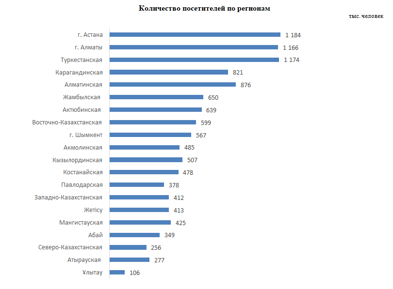 "Наиболее популярными направлениями стали Астана, которую посетили 10,1 процента туристов, Туркестанская область с долей 10 процентов, а также Алматы (9,9 процента). В числе востребованных регионов также оказались Алматинская область (7,4 процента) и Карагандинская область (7 процентов)", - отметили в органах официальной статистики.
