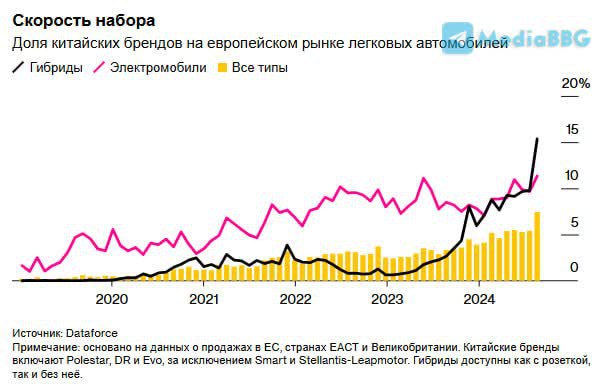 "Рост продаж обеспечили, в первую очередь, подключаемые гибриды и электромобили, спрос на которые в Европе стремительно увеличивается. Китайские бренды активно занимают нишу экологичного транспорта, предлагая конкурентные по цене и технологиям модели, что позволяет им укреплять позиции на фоне растущего интереса европейцев к "зеленым" решениям", - сообщает информагентство.