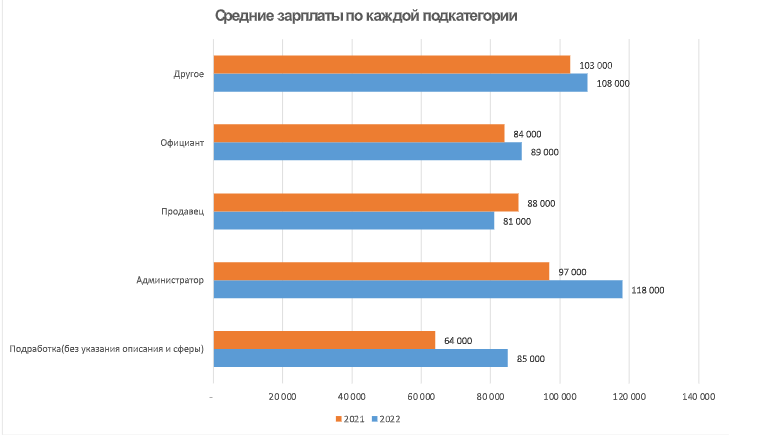 В разрезе городов аналитика также достаточно любопытна. Самую высокую заработную плату готовы платить в Алматы, в рубрике Подработка средняя заработная плата в городе составляет 120 000 тенге, в рубрике администратор самая высокая зарплата ждет астанчан – 150 000 тенге в среднем. Меньше всего готовы платить в Кызылорде, рубрика продавец со средней заработной платой 30 000 тенге по городу, няни меньше всего получат в Костанае – 35 000 тенге в среднем по городу.