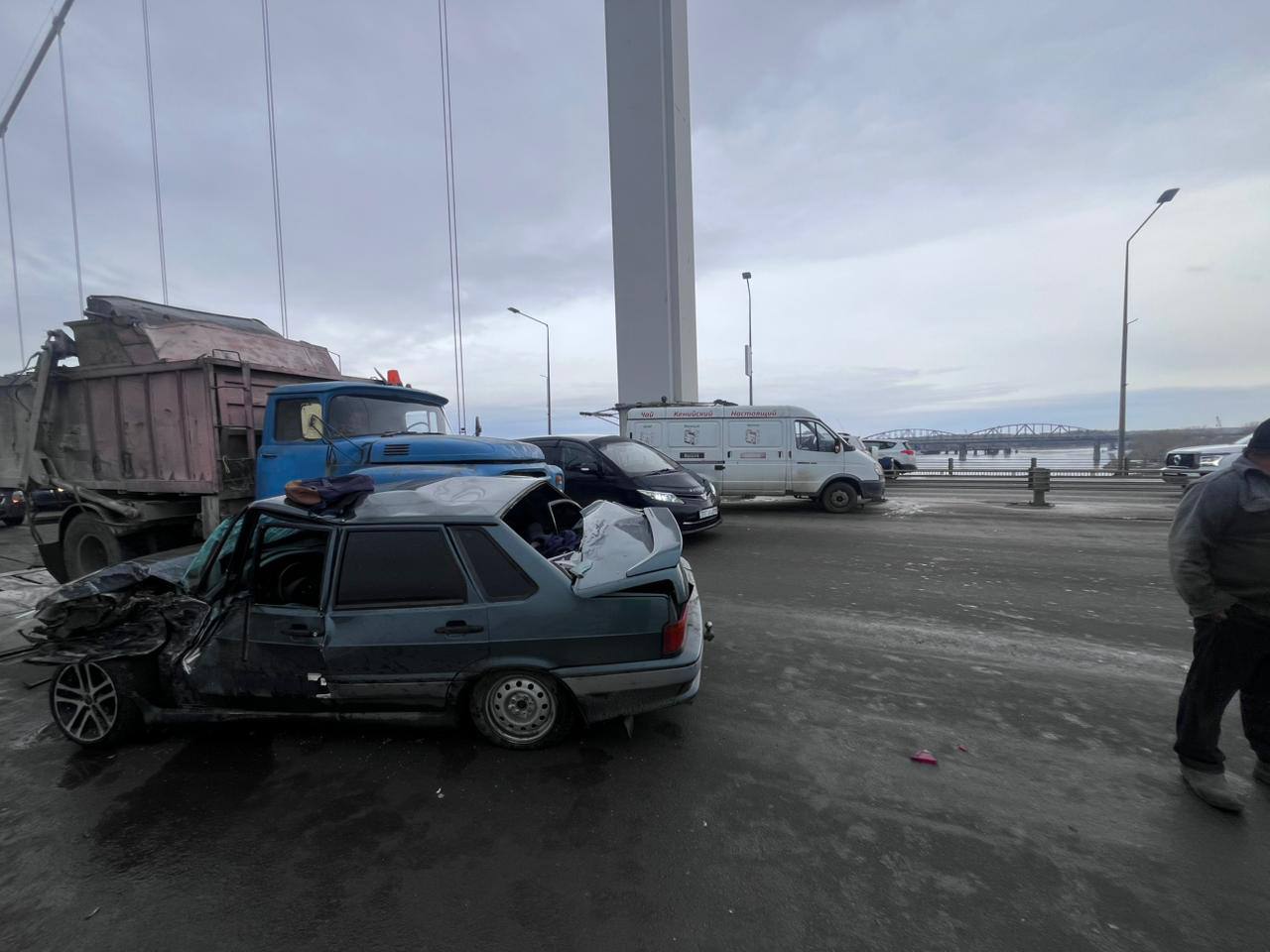 "Как сообщили в службе "103", сообщение о происшествии поступило в 14 часов 37 минут. По предварительным данным, 26-летний водитель автомобиля "ВАЗ 21150", двигаясь по мосту со стороны правого берега в направлении левого, при перестроении совершил наезд на стоящий в неисправном состоянии автомобиль "ГАЗ 27055-240". От инерционного удара "ВАЗ 21150" также столкнулся с автомобилем "ЗИЛ 13", за рулем которого находился 48-летний водитель", - рассказали в полиции Семея.